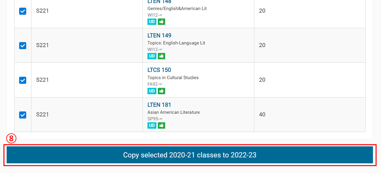 - Click the “Copy selected YYYY-YY classes to YYYY-YY” button. (⑧ below)